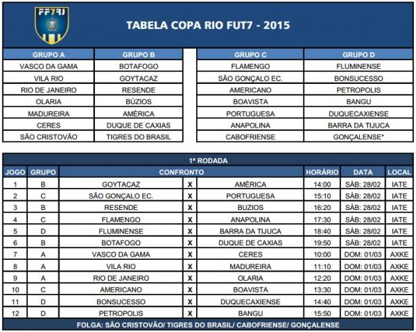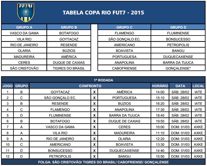 Neste fim de semana, a Federação de Futebol 7 do Estado do Rio de Janeiro rola a bola para a Copa Rio, primeira competição do ano de 2015. Serão 28 equipes divididas em quatro grupos, com disputas internas, na primeira fase. Com 16 clubes classificados, a segunda fase começa com as oitavas de final. Novidade nesta edição, os quatro primeiros lugares garantirão vaga para a Copa do Brasil.