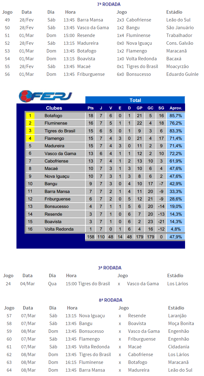 Após 7 rodadas da Taça Guanabara de Juniores, o Vasco está em 6º lugar na tabela. Entretanto, o Gigante da Colina tem um jogo a menos do que a maioria dos competidores. Essa partida pendente é contra o Tigres, em Los Lários, e será cumprida nesta 4ª-feira (04/03). Se a garotada vascaína obtiver uma vitória simples, ultrapassará Madureira, Flamengo e o próprio Tigres e entrará no G4.