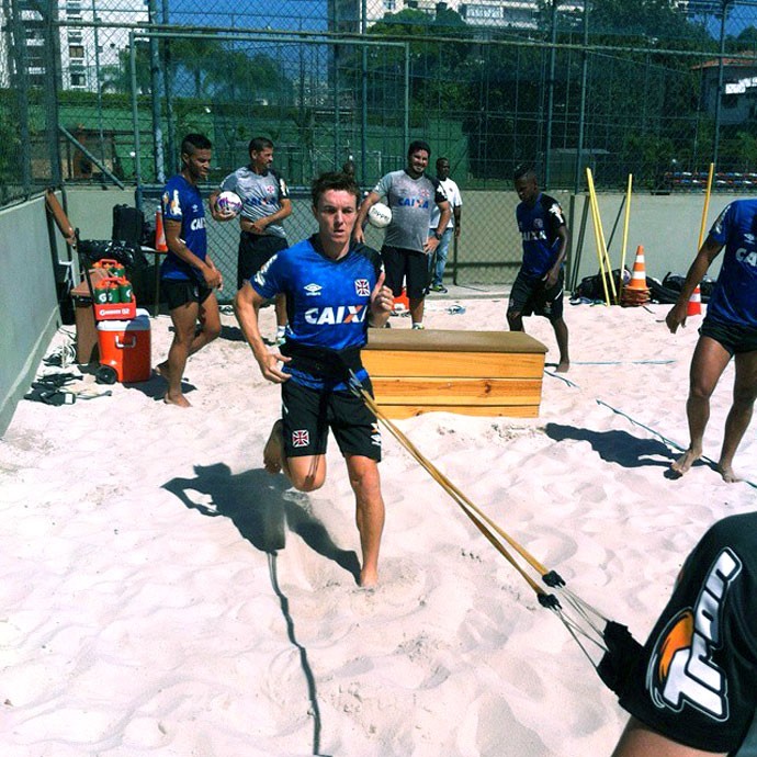 Antes mesmo de ser apresentado oficialmente no Vasco, Dagoberto realizou o seu primeiro treino com os novos companheiros. Ele participou de uma atividade na caixa de areia com um circuito físico com diversos tipos de exercícios na Barra da Tijuca. A apresentação do jogador está marcada para as 16h desta quarta-feira em São Januário.