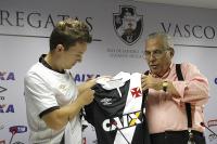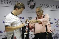 Dagoberto veste a camisa do Vasco em sua apresentação; veja fotos