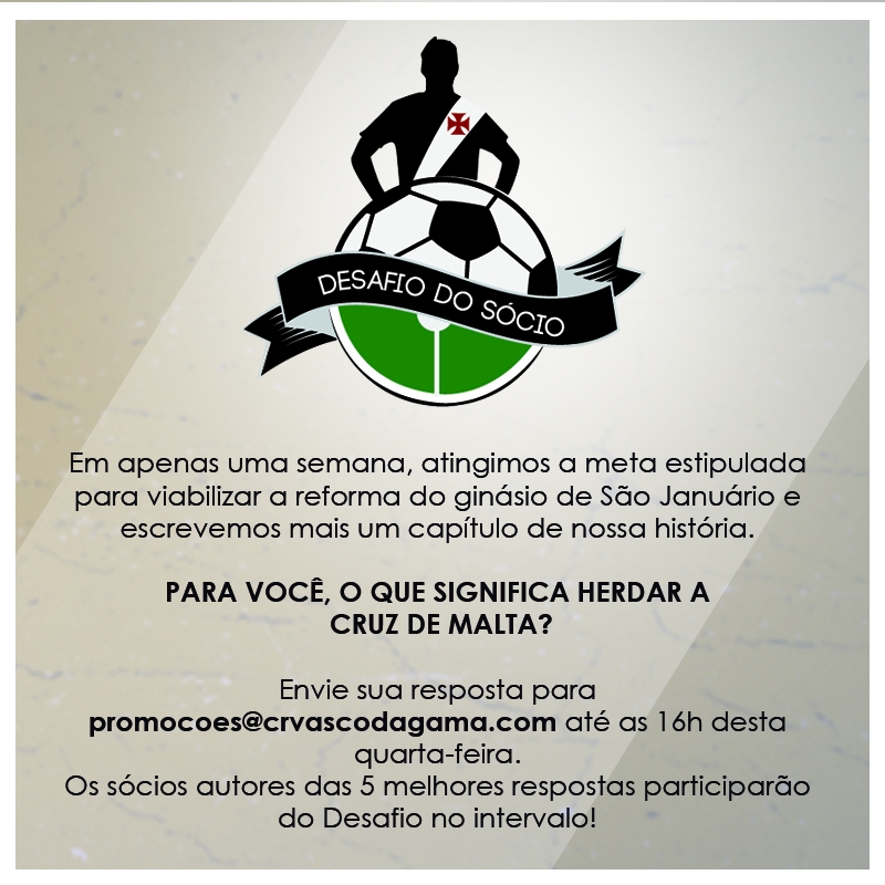 Para participar da ação, os sócios do clube deverão responder a seguinte pergunta: "Em apenas uma semana, atingimos a meta estipulada para viabilizar a reforma do ginásio de São Januário e escrevemos mais um capítulo de nossa história. PARA VOCÊ, O QUE SIGNIFICA HERDAR A CRUZ DE MALTA?"