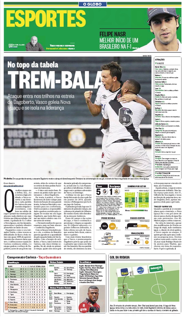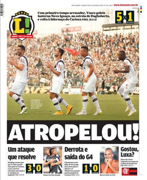 Veja como a imprensa carioca destacou a goleada e a liderança do Vasco na Taça Guanabara