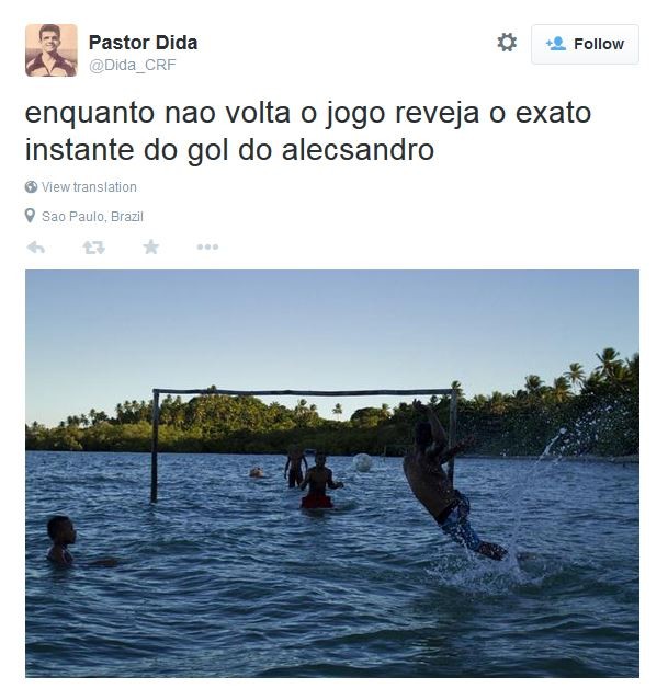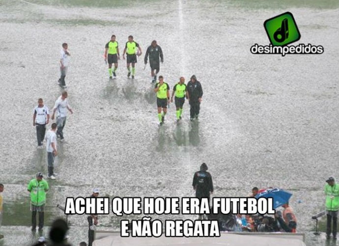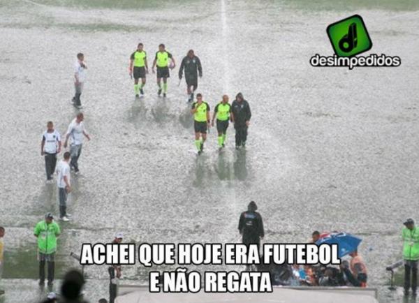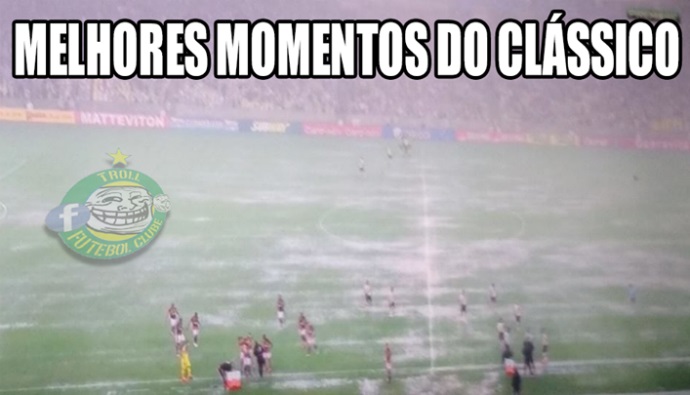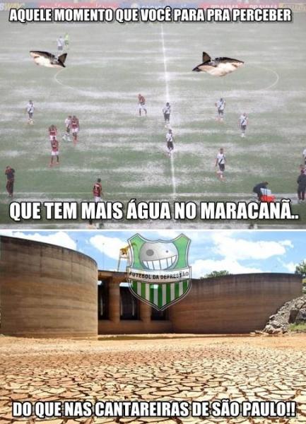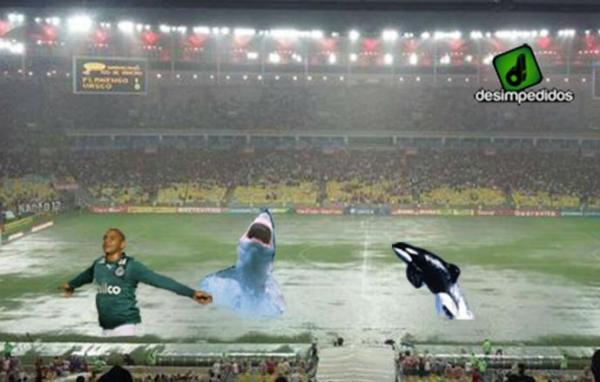 O gramado do Maracanã ficou alagado no começo do clássico entre Flamengo e Vasco na noite deste domingo devido à forte chuva que caiu no Rio de Janeiro. O jogo chegou a ser interrompido por 30 minutos até que a água fosse escoada pela drenagem. Na web, porém, os internautas não perdoaram e fizeram várias piadas com o acontecimento. Confira: