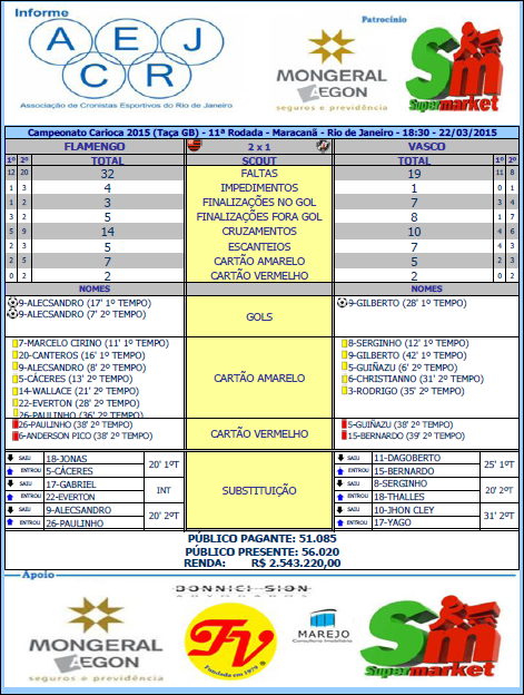 Acerj @acerjrio Scout final entre Flamengo e Vasco pelo Campeonato Carioca 2015 no Maracanã.