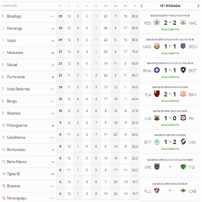 Tabela do Campeonato Estadual 2015