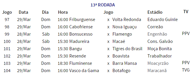 Fonte: NETVASCO (texto), Futrio (resultados e autores dos gols), GloboEsporte.com (classificação), FFERJ (artilharia e próximos jogos)