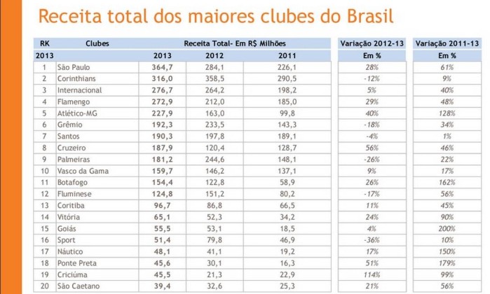 - O Botafogo gastou mais do que poderia com o projeto Seedorf. O custo do seu departamento de futebol (R$ 167,7 milhões) foi o quinto do país, quase a mesma coisa que o Flamengo, que foi o segundo em bilheteria (R$ 48 milhões, contra R$ 14 milhões do Botafogo - mesmo valor do Vasco) e o primeiro em cotas de TV (R$ 111 milhões contra R$ 44 milhões do Botafogo).