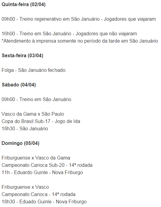 Fonte: NETVASCO (texto), Site oficial do Vasco (programação)