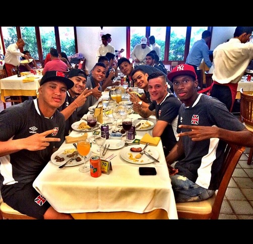 gfelix95 Comemorando a vitória de 4 a 1 sobre a Friburguense. E também comemorando meu aniversario com a rapaziada do bem !!!! #FamiliaSub20 ⚽️👊❤️