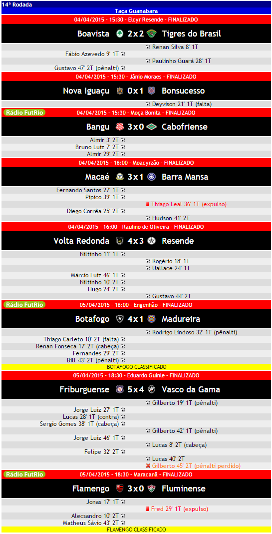 Se a Taça Guanabara acabasse hoje, as semifinais seriam: Flamengo (1º) x Madureira (4º) e Botafogo (2º) x Vasco (3º), com o Fluminense ficando de fora.