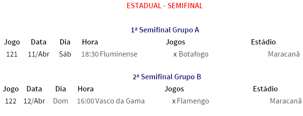Os demais classificados para as semifinais foram Botafogo (campeão da Taça Guanabara), Flamengo (vice-campeão) e Fluminense (4º colocado). As semifinais, em ida e volta, serão Flamengo x Vasco e Botafogo x Fluminense; Flamengo e Botafogo têm a vantagem dos 2 empates.