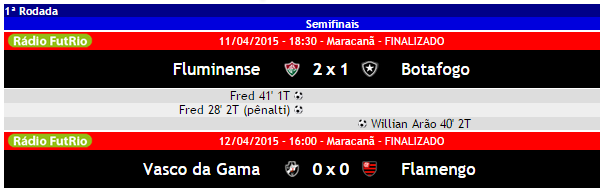 Na outra semifinal, o Fluminense derrotou o Botafogo por 2 a 1 e joga pelo empate para ir à final. Se o Botafogo vencer por 1 gol de diferença, a decisão da vaga será nos pênaltis; se vencer por 2 ou mais gols, se classifica.