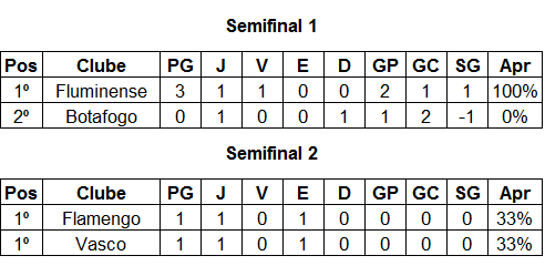 Terminada a 1ª rodada das semifinais do Campeonato Estadual, o Vasco, que empatou com o Flamengo por 0 a 0, não conseguiu inverter a vantagem e terá de derrotar o rival na 2ª partida, por qualquer diferença de gols, para avançar à decisão.