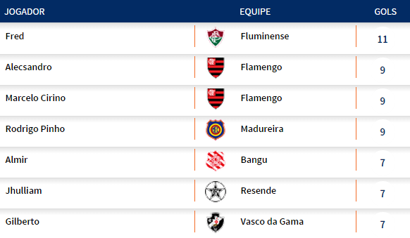 Com 7 gols, Gilberto está na 5ª colocação na artilharia. O líder é Fred, do Fluminense, que tem 11 gols.
