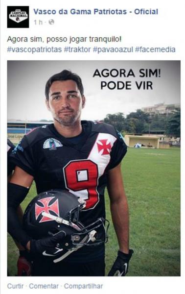 O Vasco Patriotas, time de futebol americano do Vasco, segue lembrando da primeira partida da semifinal do Campeonato Carioca, entre o Cruzmaltino e o Flamengo, no último domingo, que acabou empatado em 0 a 0 e foi marcada por jogadas violentas. Depois de se candidatar para encarar o Rubro-Negro, os Patriotas publicaram uma montagem, nesta terça-feira, com Gilberto vestido com a camisa da equipe e os equipamentos típicos do futebol americano, como o capacete.