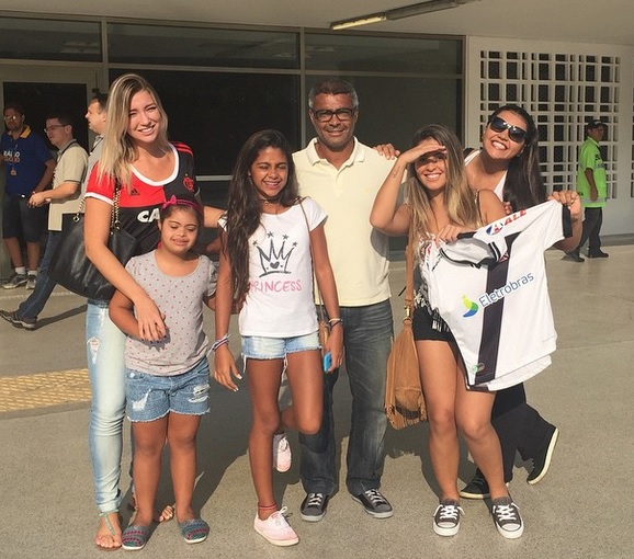 Romário posta foto chegando ao Maracanã, com namorada vestida com camisa do Urubu e filhas segurando camisa do Vasco