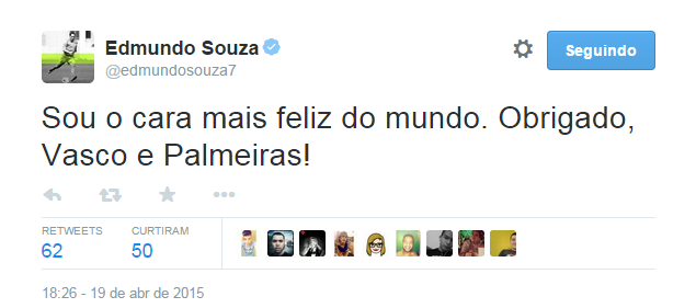 Fonte: Twitter do ex-jogador Edmundo
