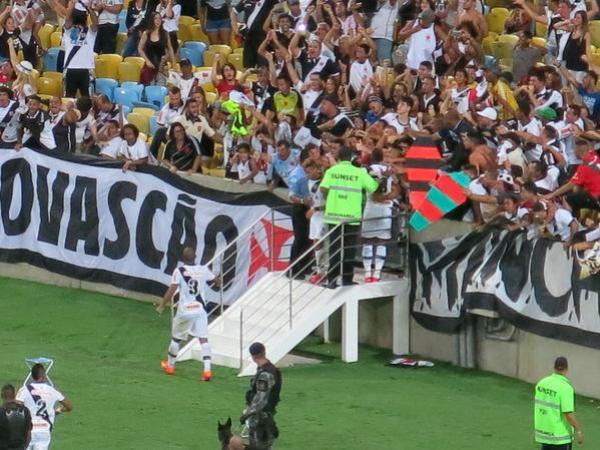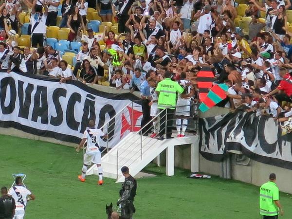 Edgard Maciel de Sá @edmacieldesa Comemoração nos braços da torcida com direito aos caixões da dupla Fla-Flu! Vasco tem a vantagem do empate #trmaraca