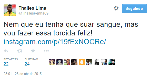 Thalles: 'Nem que eu tenha que suar sangue, mas vou fazer essa torcida feliz'