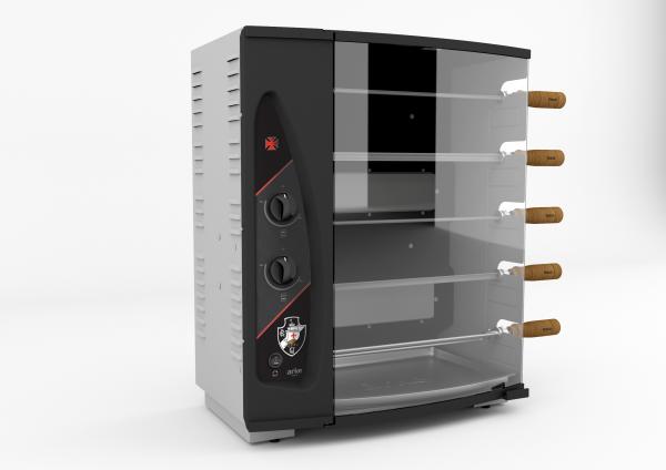 As churrasqueiras possuem design personalizado com as cores do Gigante da Colina desde o painel frontal com o brasão do clube até os espetos com o nome do Vasco.