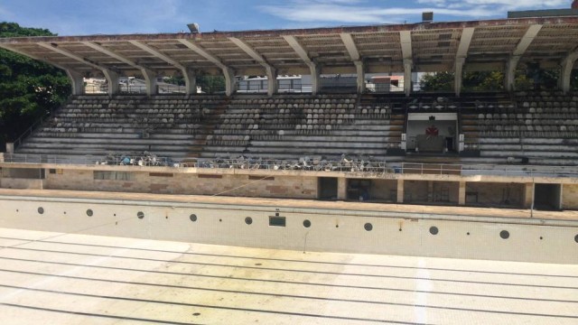 Seja qual for o resultado de domingo no Maracanã, o Vasco está próximo de uma conquista que nada tem a ver com o campo e a bola: a reforma do parque aquático de São Januário, completamente devastado durante a gestão de Roberto Dinamite. Apesar da aparência de abandono sugerida pelas fotos feitas no início da semana por um leitor do blog, as piscinas estão sendo recuperadas, e a expectativa é que até o fim de maio estejam finalmente prontas para o uso.