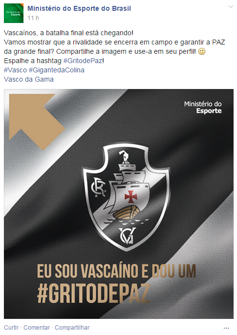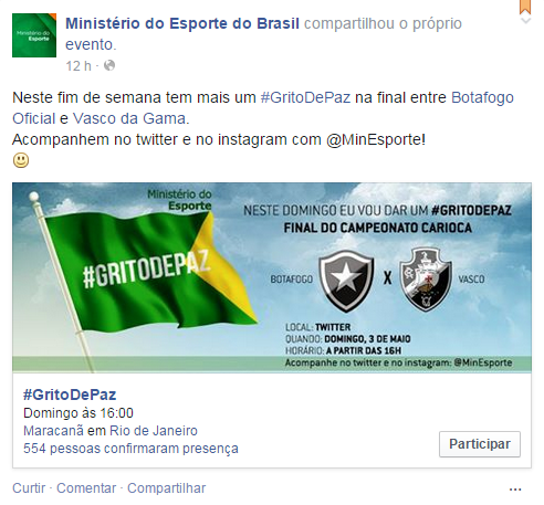 Ministério do Esporte 'aproveita' Botafogo x Vasco para divulgar campanha pela paz no futebol