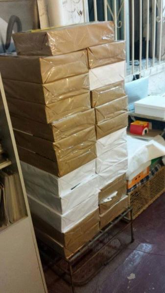 Já está impresso nosso mosaico. 26 mil folhas foram impressas, 350kg de papel, tudo para uma festa linda no domingo.
