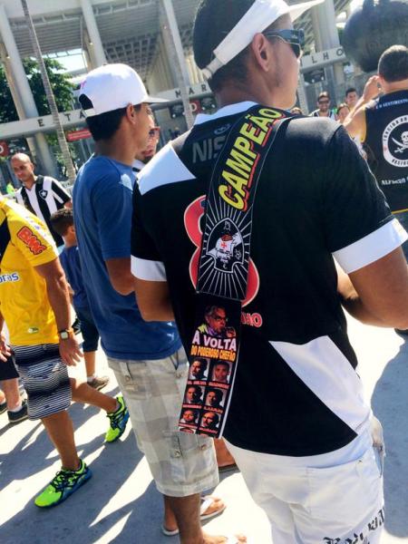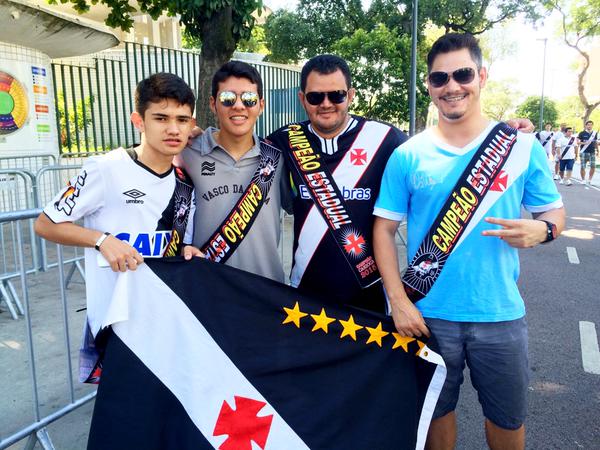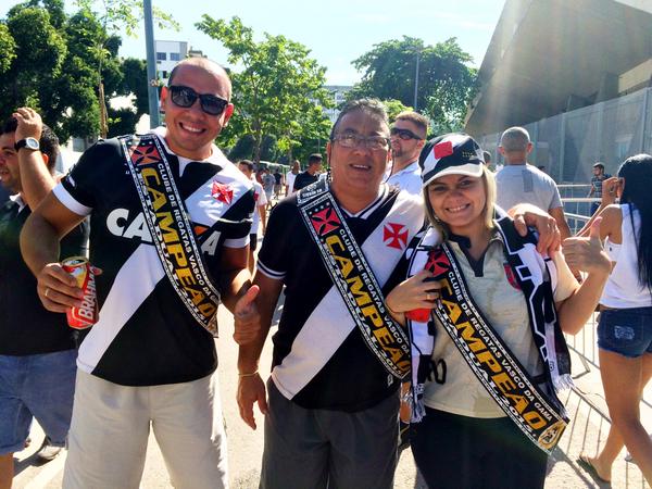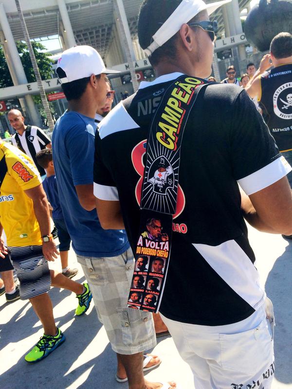 Vascaínos confiantes no Maracanã. Alguns já desfilam com faixas de campeão ao redor do estádio #gevas