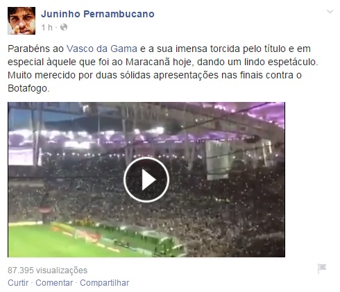 Parabéns ao Vasco da Gama e a sua imensa torcida pelo título e em especial àquele que foi ao Maracanã hoje, dando um lindo espetáculo. Muito merecido por duas sólidas apresentações nas finais contra o Botafogo.