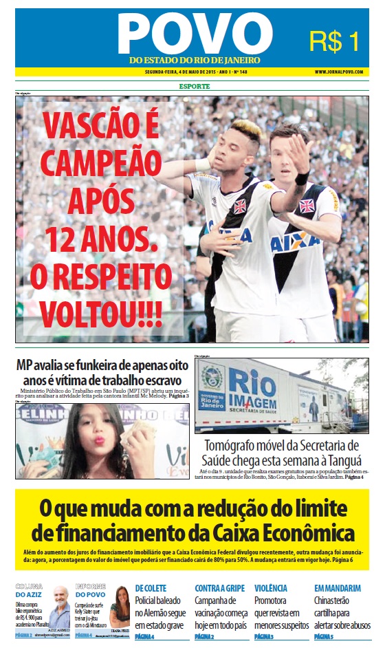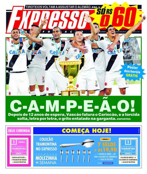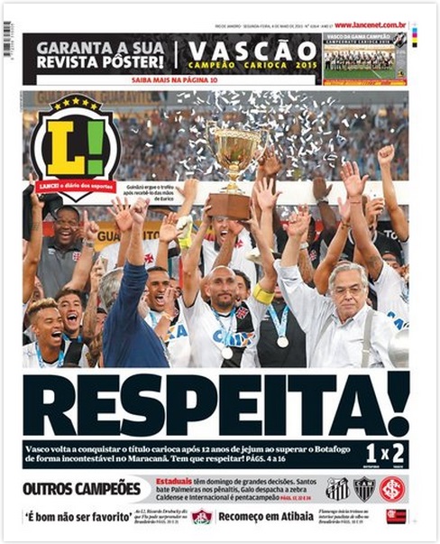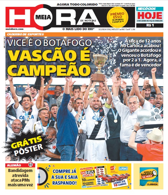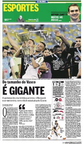 Confira como a imprensa carioca destacou a vitória e o título estadual do Vasco