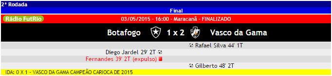 Terminada a 2ª rodada das finais do Campeonato Estadual 2015, o Vasco, que derrotou o Botafogo por 2 a 1, assegurou o título da competição. É o 23º título vascaíno na história e o primeiro desde 2003.