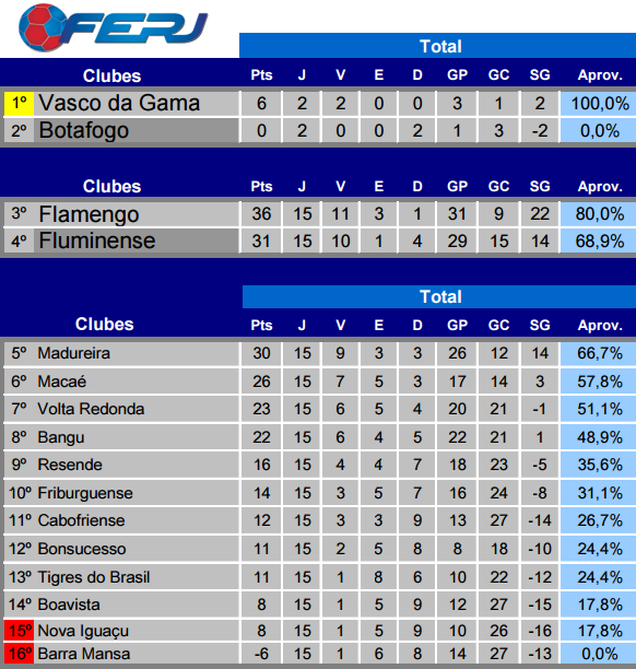 Fonte: NETVASCO (texto, classificação), FutRio (resultados e autores dos gols), FFERJ (artilharia e próximos jogos)