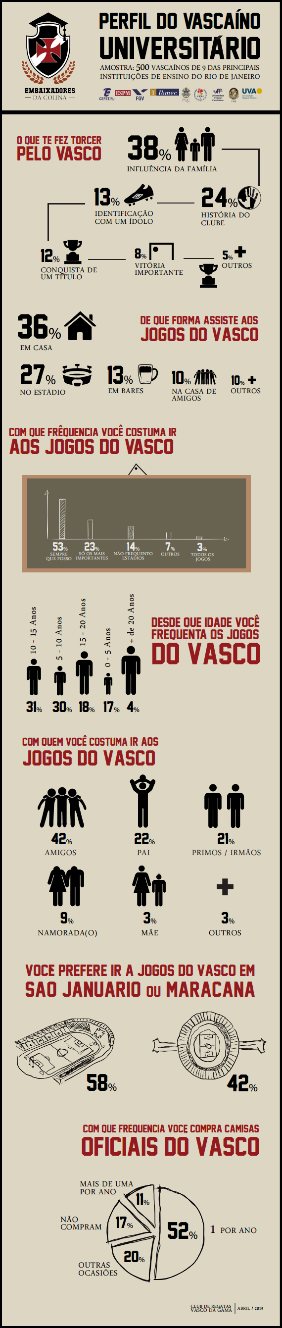Um dos principais pontos destacados na primeira pesquisa é de que São Januário é um estádio propício e agradável para se frequentar com a família. Além disso, os estudantes apontaram a influência do pai e da grandiosa história do clube como fatores determinantes na escolha do time do coração.