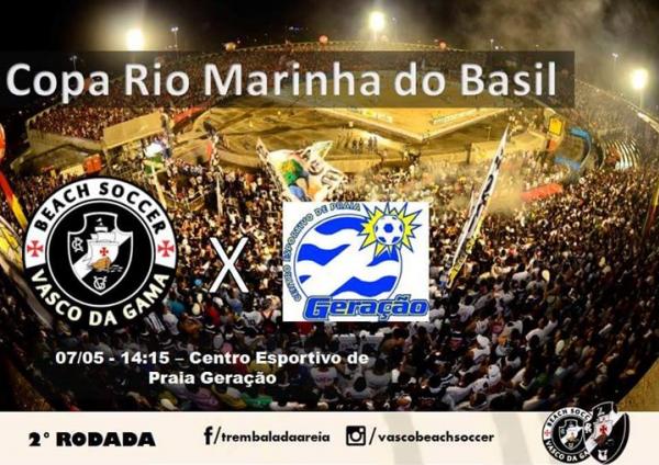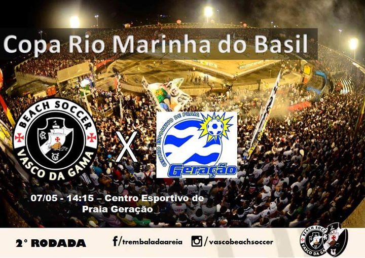 O time de Beach Soccer do Vasco enfrenta, às 14h15 desta 4ª-feira (06/05), o Geração pela Copa Rio Marinha do Brasil. Acompanhe em tempo real pelo Facebook Vasco Beach Soccer clicando aqui.