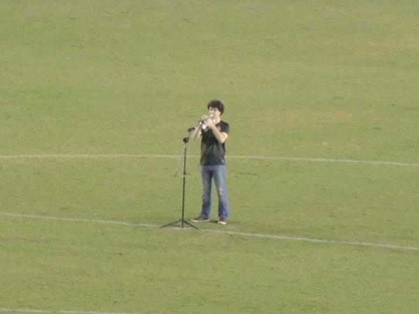 Ele foi convidado para tocar diante da torcida, hoje, no intervalo do jogo, e foi muito aplaudido por todos das arquibancadas. #trsaojanu