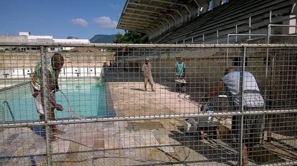 As obras do parque aquático de São Januário prosseguem, como mostra foto publicada numa rede social por um diretor do clube: