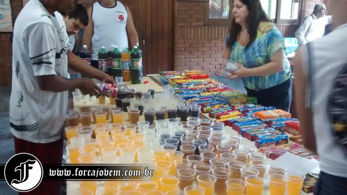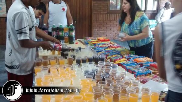 A torcida além disto comprou 200 pacotes de biscoito e 20 garrafas de 2 litros de refrigerante, cada interno recebeu das mãos dos integrantes da FJV 15ª Família um pacote de biscoito e refrigerante.