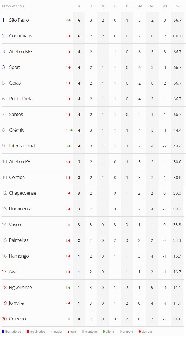 Campeonato Brasileiro 2015 (3ª rodada) São Paulo 3 x 0 Joinville Vasco 1 x 1 Internacional Grêmio 1 x 0 Figueirense
