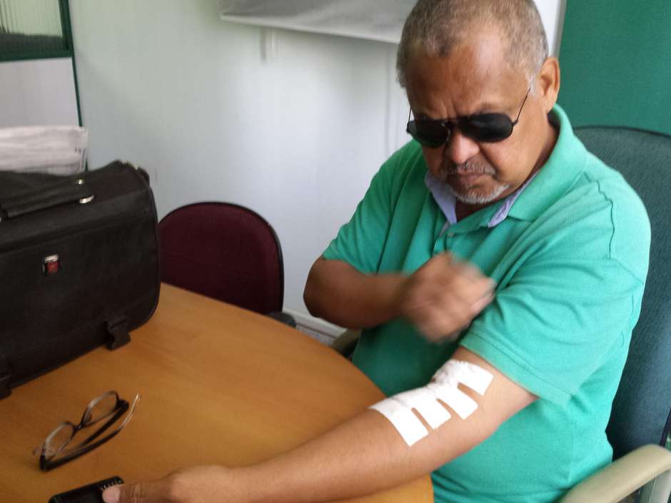O ataque, que lhe rendeu um corte profundo no braço esquerdo, aconteceu em pleno domingo, à luz do dia. Os medicamentos, que provocam enjoo e dor de cabeça, são preventivos e obrigatórios por causa do contato com a faca do assaltante. Qualquer vestígio de sangue contaminado pode causar dano à saúde.