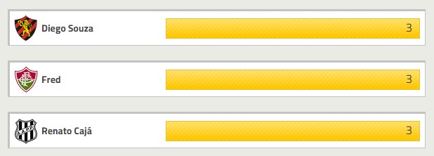 Apenas Lucas marcou gol pelo Vasco no Brasileiro até o momento. Fred, do Fluminense, Renato Cajá, da Ponte Preta, e Diego Souza, do Sport, dividem a artilharia da competição, com 3 gols cada.