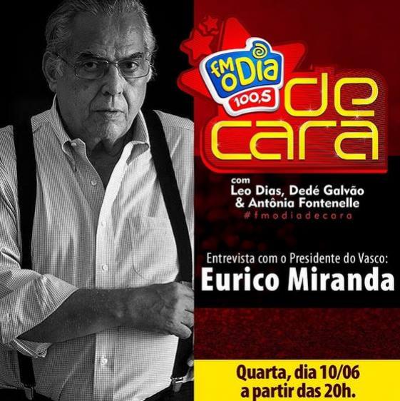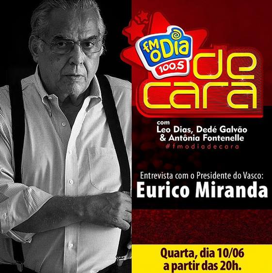 Eurico participará do programa 'De cara', da Rádio FM O Dia, no dia 10/06