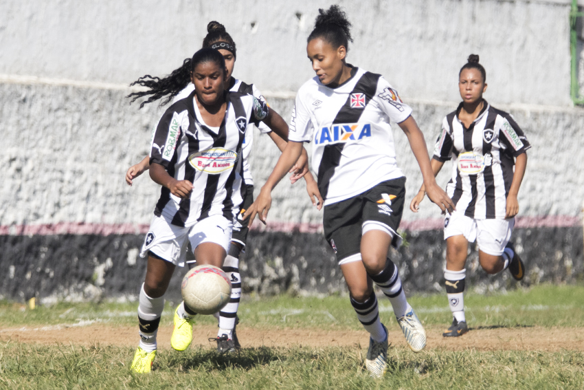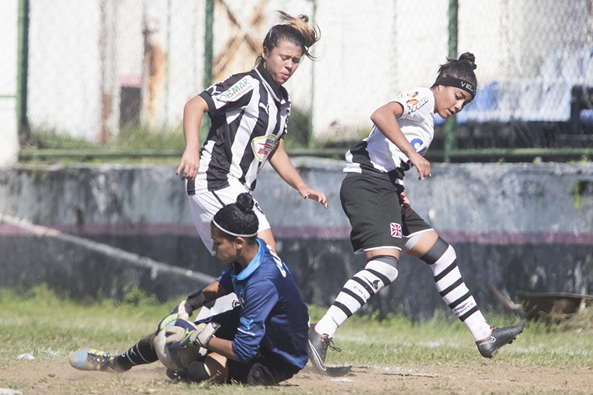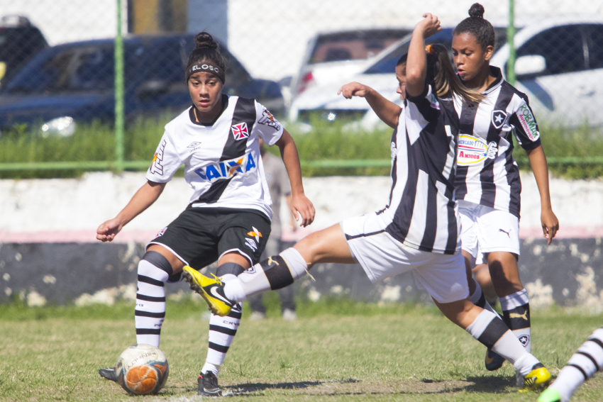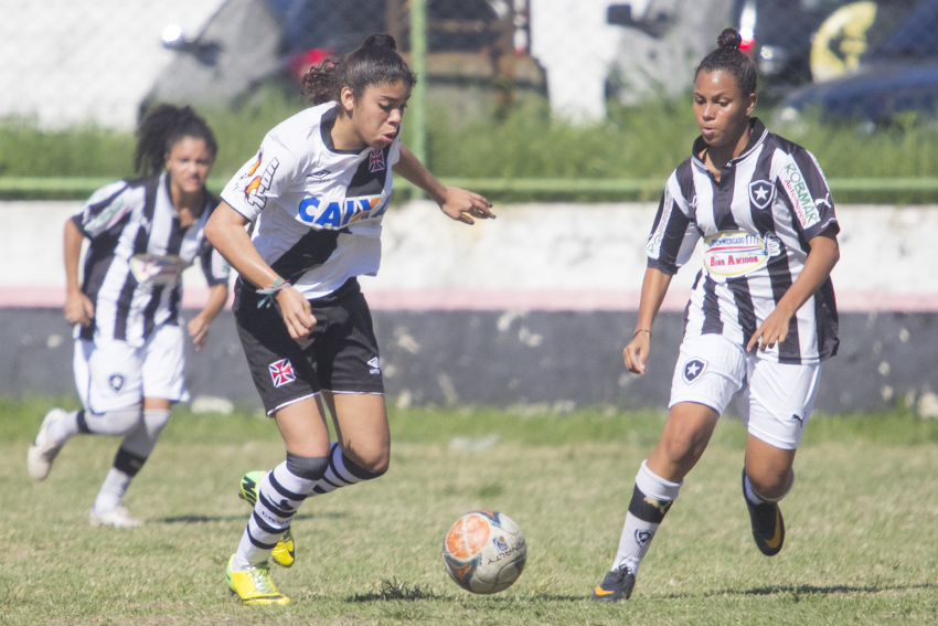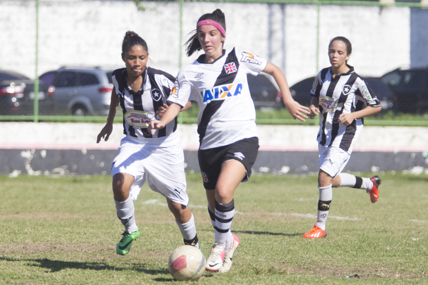 Vasco e Botafogo se enfrentaram na tarde desta quinta-feira (04/05), pela oitava rodada da Taça Nova Iguaçu de futebol feminino sub-17. A equipe cruzmaltina foi derrotada pelo placar de 2 a 0. Com o resultado, as equipes ficam empatadas com 18 pontos, mas o Vasco se mantém na liderança devido ao saldo de gols superior.