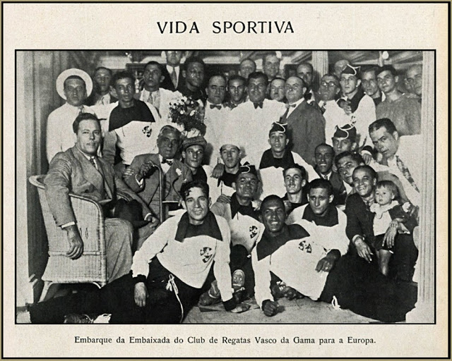 "A directoria do Vasco da Gama envida os melhores esforços no sentido de conciliar interesses que permittam o embarque do seu team para a Europa, ainda a 8 de junho, depois de jogo com o Bangú A ida do Vasco da Gama á Europa Desde que o Vasco da Gama projectou levar a effeito uma excursão á Europa, com seu quadro principal de football reforçado de alguns elementos de destaque de conjuntos de outros clubs, começaram as pessôas interessadas pela sorte do football carioca a se impressionar com os effeitos da ausencia quasi certa desses excellentes footballers, no seleccionado que terá de defender as côres da cidade, no campeonato brasileiro. Marcada, agora, a partida da delegação vascaina, essa impressão transformou-se naturalmente em temor justificavel, ante o prejuizo fatal que acarretaria o desfalque da representação carioca. Chegou-se mesmo a indagar, como permittiriam as autoridades sportivas a realização dessa viagem do Vasco da Gama, nas condições apontadas?Certamente que os interesses da Associação Metropolitana não poderiam ser preteridos pelos de qualquer de seus filiados, por mais respeitaveis que fossem. Attendendo a essas circunstancias o Vasco da Gama traçou um progamma, que lhe permite estar de regresso a esta capital, ainda a tempo, dos players que vão integrando sua delegação poderem fazer parte do seleccionado carioca. Podemos, assim, ficar todos descançados, que a excursão do valoroso gremio da Cruz de Malta ao Velho Mundo não comprometterá a efficiência do quadro metropolitano, que terá de defender as côres da cidade no campeonato brasileiro de football." (grafia original da época)