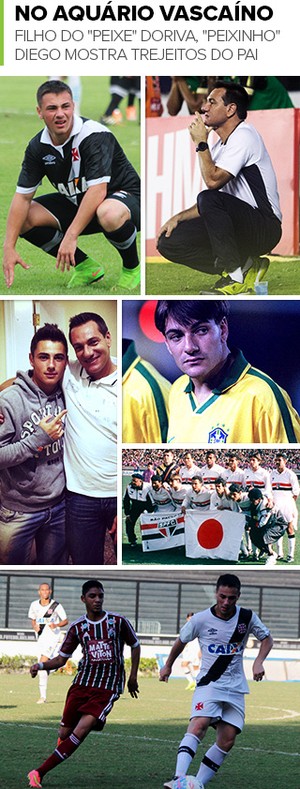 Diego recebeu a reportagem do GloboEsporte.com na tarde do dia 28 de maio. A entrevista havia sido remarcada uma vez, pois o jogador dos juniores do Vasco foi poupado para o Brasileiro sub-20 depois de sequência de jogos como titular no Carioca da categoria. Filho de Doriva, Diego é jogador bem mais ofensivo do que era o pai, um determinado e vitorioso carregador de piano - foi campeão do mundo pelo São Paulo. Para conseguir seu espaço no Vasco, ele mudou um pouco suas características e teve sequência como titular. A mudança serviu de aprendizado.