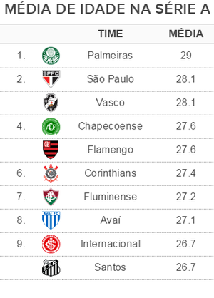O time base que vinha sendo utilizado por Doriva na competição nacional mesclava a juventude de nomes como Madson e Luan com os líderes do grupo. Entre os clubes que brigam pelo título do Brasileiro, tinha, ao lado do São Paulo, a segunda maior média de idade (28.1), atrás do Palmeiras (29), do experiente Zé Roberto.