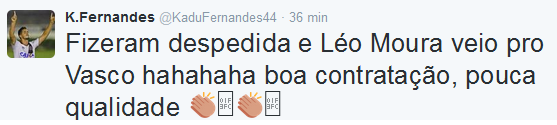 K.Fernandes @KaduFernandes44 Fizeram despedida e Léo Moura veio pro Vasco hahahaha boa contratação, pouca qualidade 👏🏼👏🏼