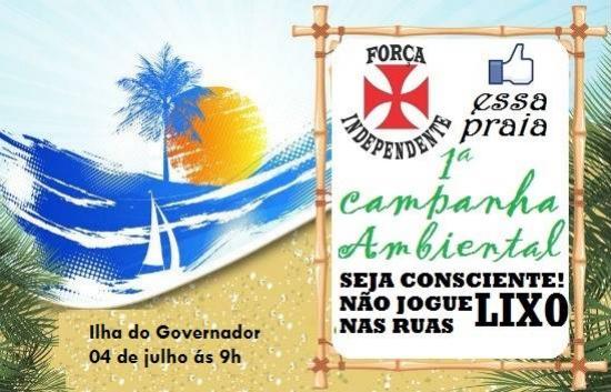 O Grêmio Recreativo e Torcida Organizada Força Independente do Vasco, vem através de sua diretoria, convocar todos os seus associados, simpatizantes da Torcida, Vascaínos e demais cidadães cariocas, a promover a nossa primeira ação social ecológica aqui na Cidade do Rio de Janeiro, no Sábado dia 04 de Julho de 2015,
