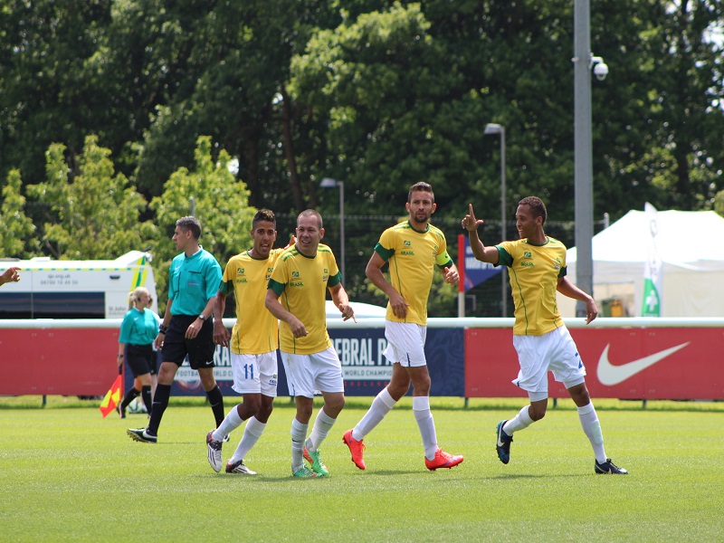 O Brasil goleou a Argentina por 4 a 0 nas quartas de final do Mundial de futebol de 7 PC, no St. George’s Parks, em Burton Upon Trent, na Inglaterra, nesta quarta-feira(24). A seleção agora espera o vencedor de Ucrânia e Irlanda, que irão fazer uma das quartas de final hoje, ás 15horas, horário de Brasília.