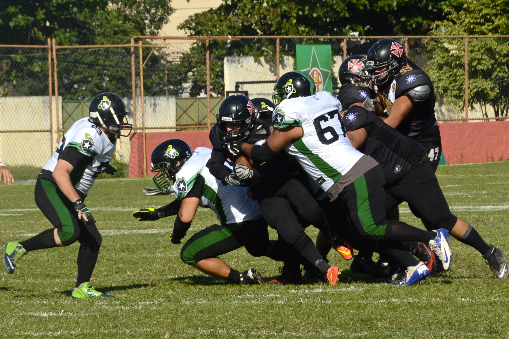 Os vascaínos começaram em ritmo acelerado. Logo no início do 1º quarto, o americano Lucas Shaw#11 deu ótimo passe para o widereceiver Lipe#9 disparar e fazer o primeiro touchdown do jogo, conquistando 6 pontos e com isso, o cruzmaltino teve direito a tentar um ponto extra, convertido pelo defensor Ryan #15 somando 7x0.