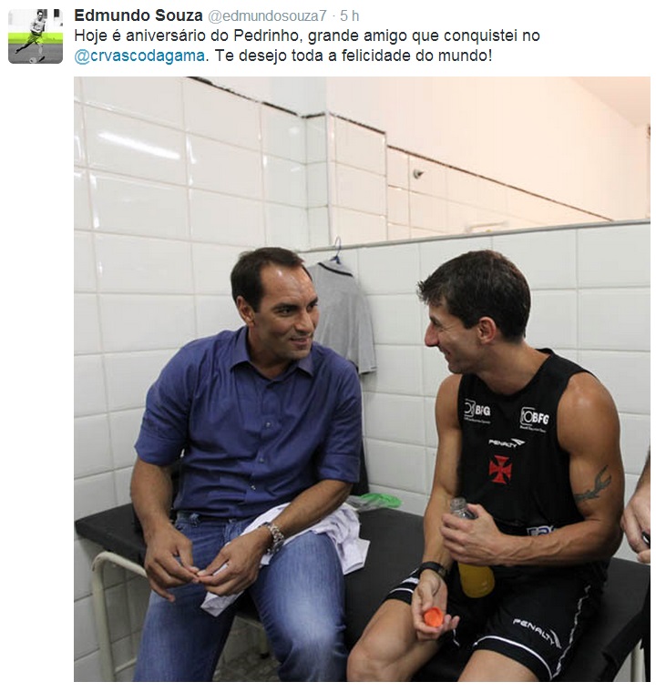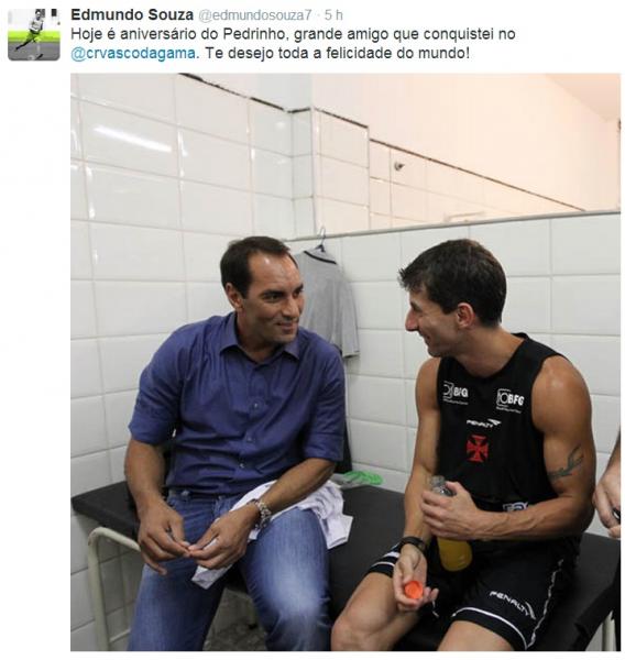 No Twittter, Edmundo homenageia Pedrinho, aniversariante do dia